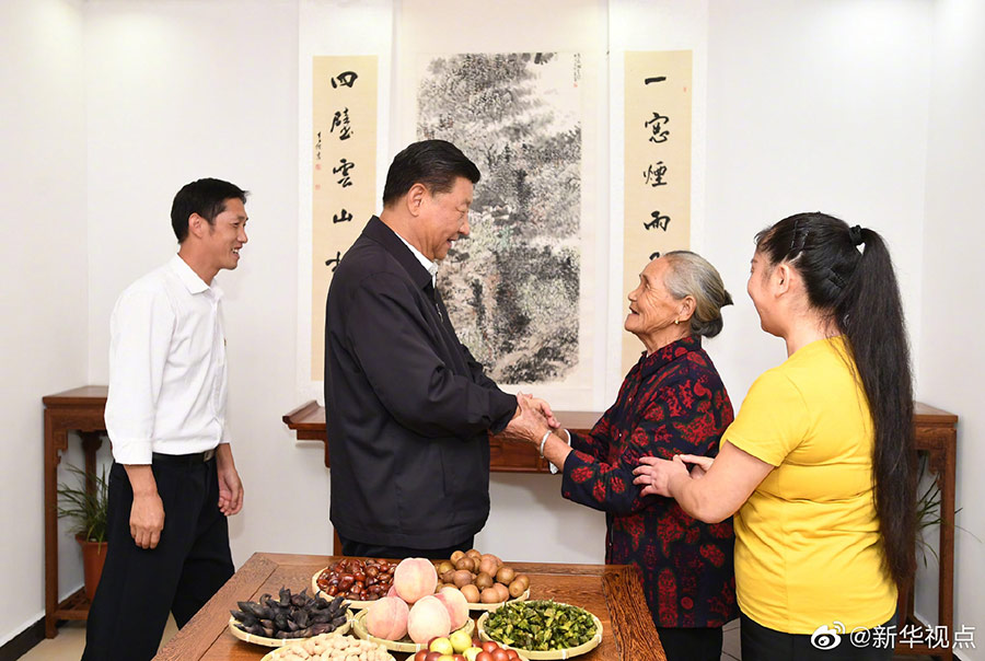 16日下午,正在河南考察的习近平总书记来到新县田铺乡田铺大塆,沿着曲折别致的村间小路,先后走进“匠心工坊”手工艺品店、“老家寒舍”民宿店、“不秋草”竹编工艺店等创客小店,实地了解这里打造创客小镇、发展特色旅游、推动乡村振兴情况,还自己付钱买了几双手工制作的富有当地特色的鞋垫。习近平指出,搞乡村振兴,不是说都大拆大建,而是要把这些别具风格的传统村落改造好。要实现生活设施便利化、现代化,能够洗上热水澡,村容村貌要整洁优美。(文字记者:张晓松、朱基钗 摄影记者:谢环驰、鞠鹏)